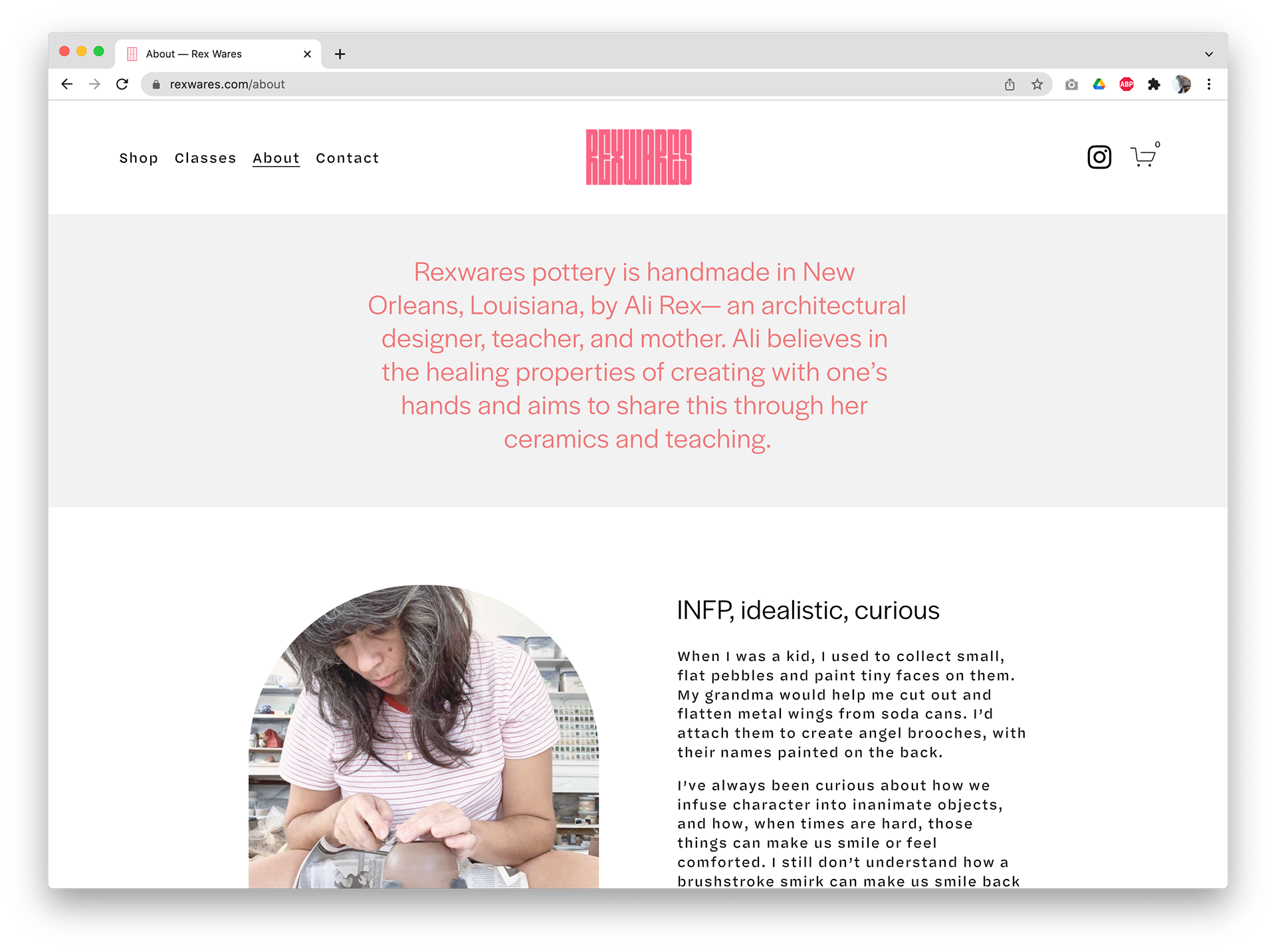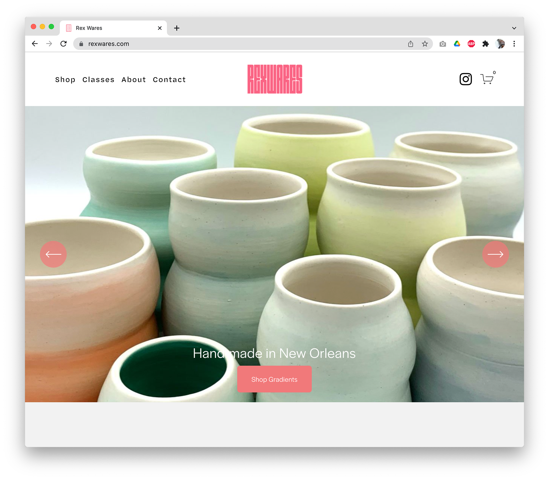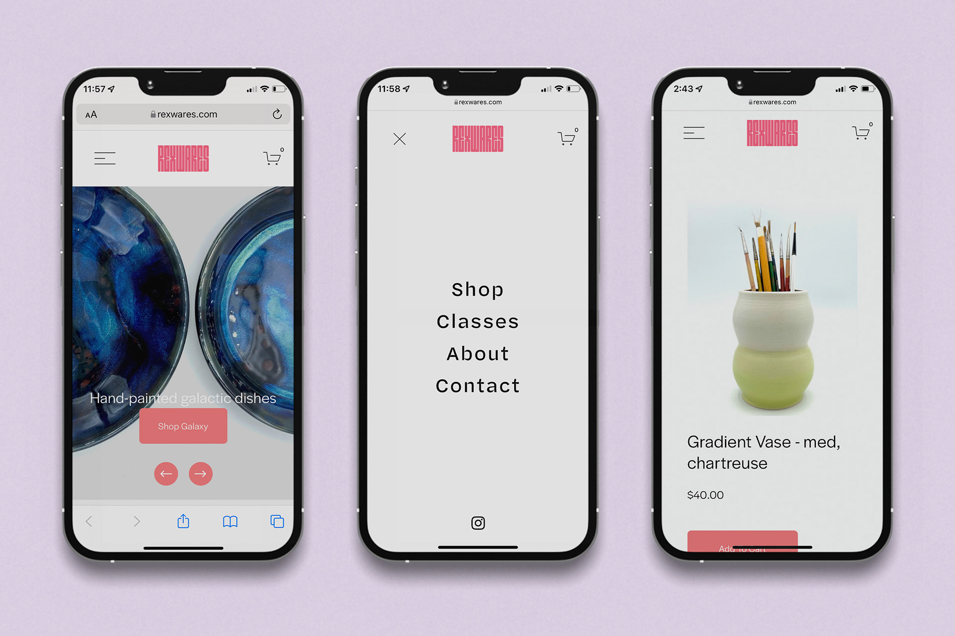 Identity design, web design, and web store for Rexwares, a potter/ceramics studio in New Orleans.